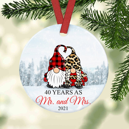 40 Years as Mr. and Mrs. Gnome Couple Gift Christmas Tree Ornament Decorations Circle Ornament SB59 73O19