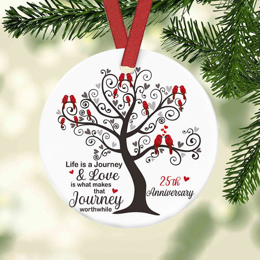 25th Wedding Anniversary Red Bird Couple Mr Mrs Love Christmas Gift Decorations Circle Ornament SB119 65O15