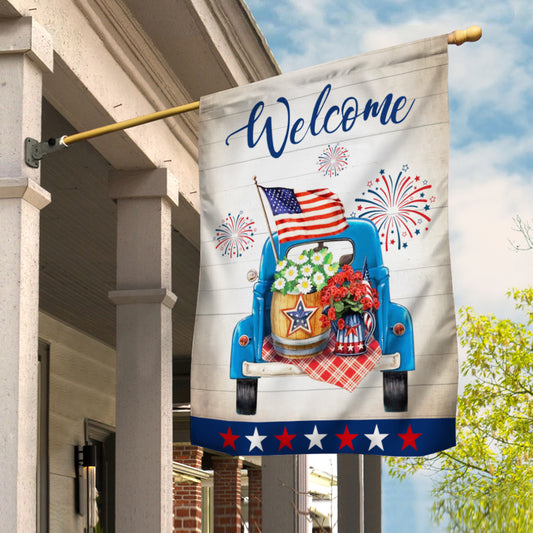 4th of July Garden Flag Welcome Flower Truck Patriotic American Flag Flowers for Yard Outdoor Decoration MY133 67O57