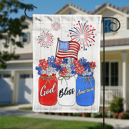 4th of July Garden Flag God Bless America Patriotic American Flag Flowers for Yard Outdoor Decoration MY125 67O53