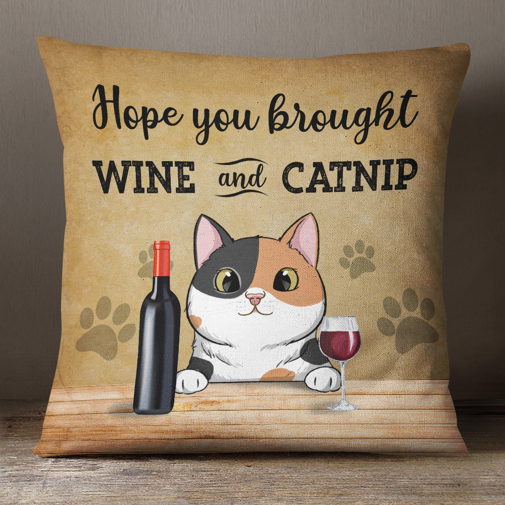 Funny Gift For Cat Lovers Cute Wine Cat Pillow Couch Cushion Sofa Decoration JN176 65O36 (Insert Included)