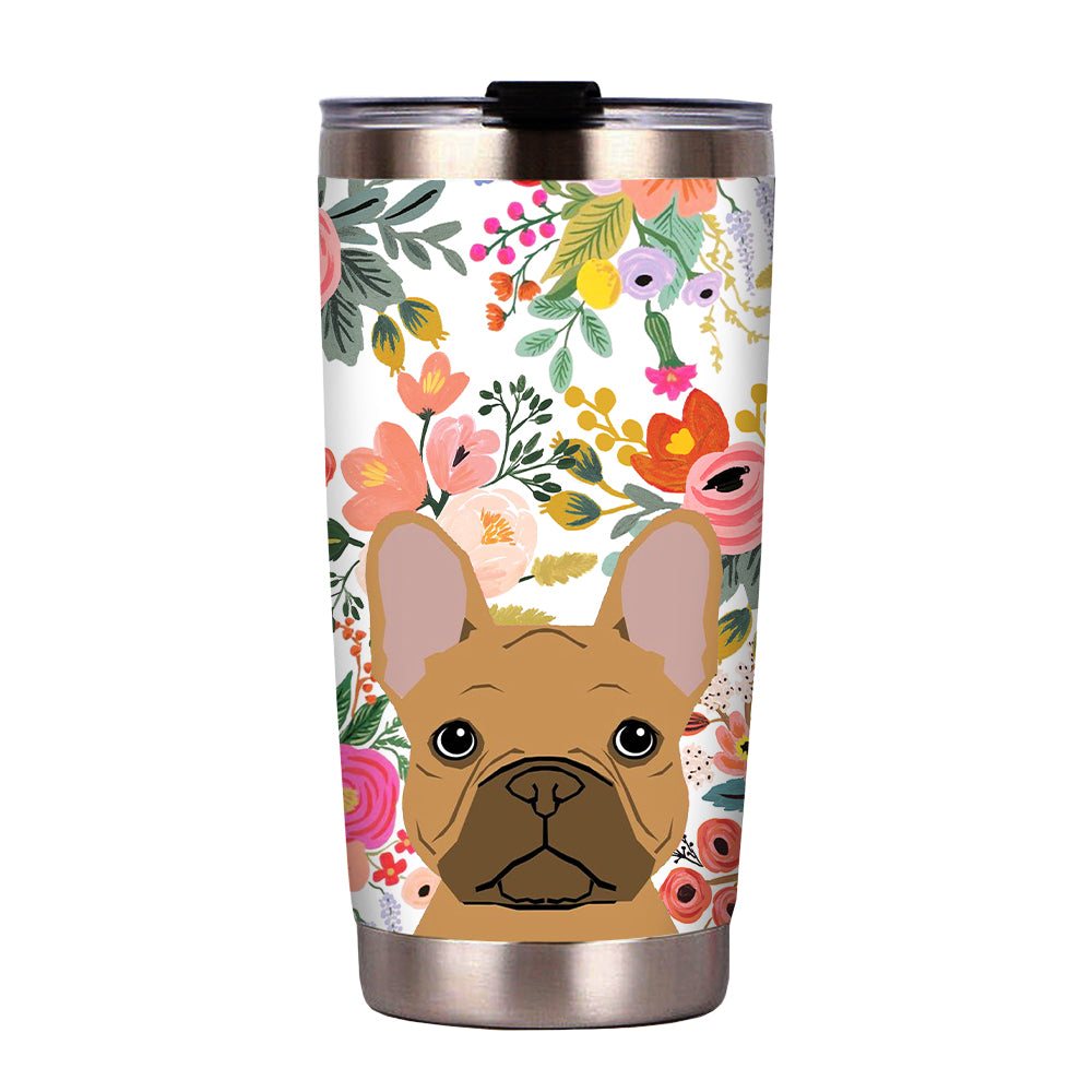 Funny Gift For Dog Lovers Flower French Bulldog Frenchie Mug Steel Tumbler JN1511 67O57