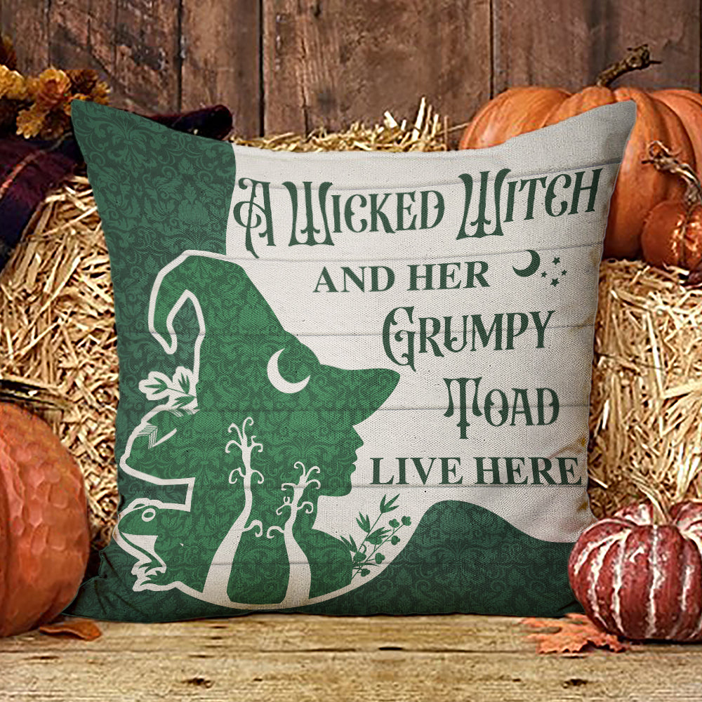 Halloween Pillow Wizard Family Witch Live Here Cushion Couch Fall Decoration