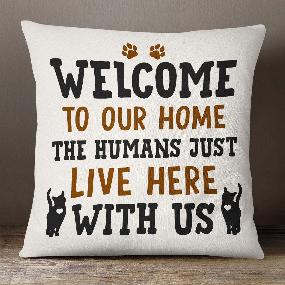 Welcome Funny Gift For Cat Lovers Cute Meow Pillow Couch Cushion Sofa Decoration